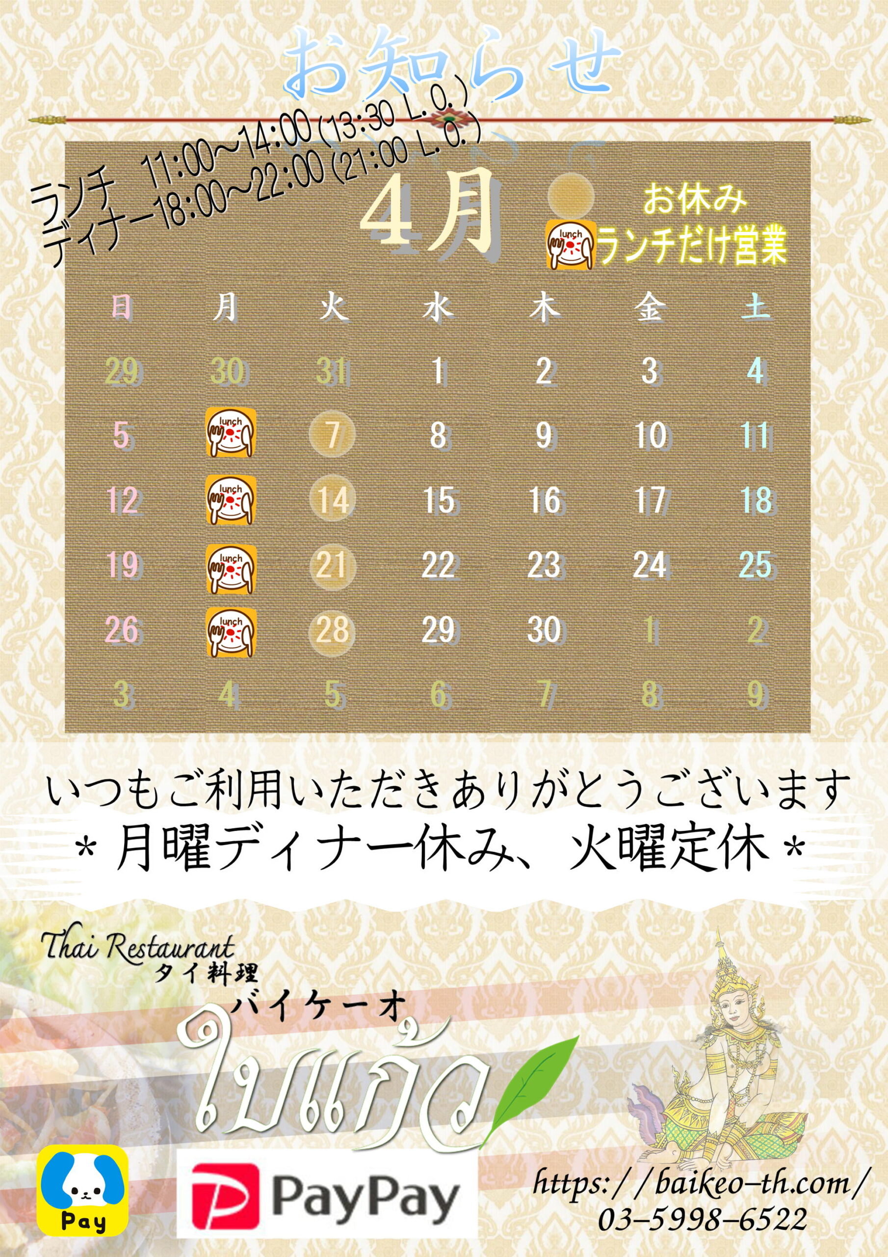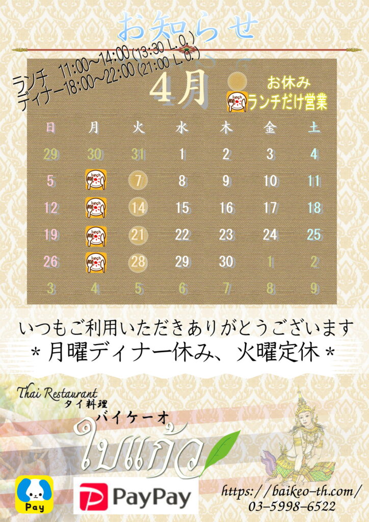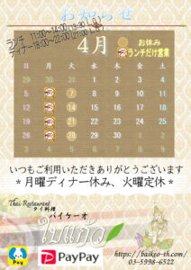 2026年4月の営業予定について